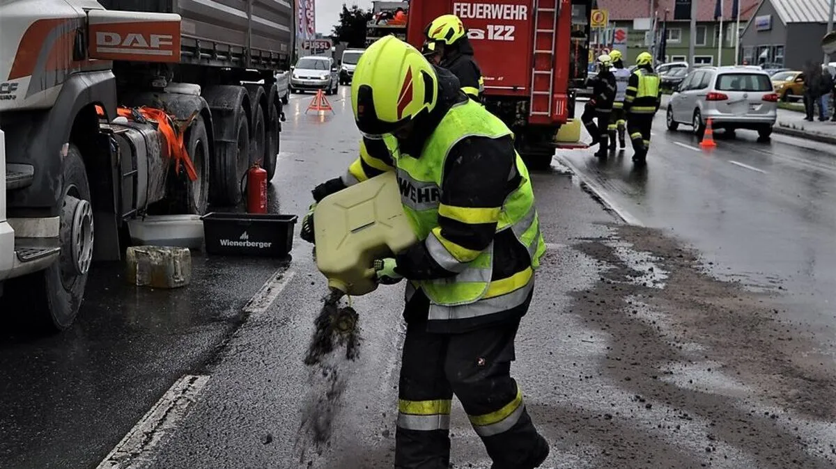 Am Dienstag prallten in Rosental an der Kainach ein außer Kontrolle geratener Pkw und ein Lkw gegeneinander - dieser verlor daraufhin 200 Liter Diesel.