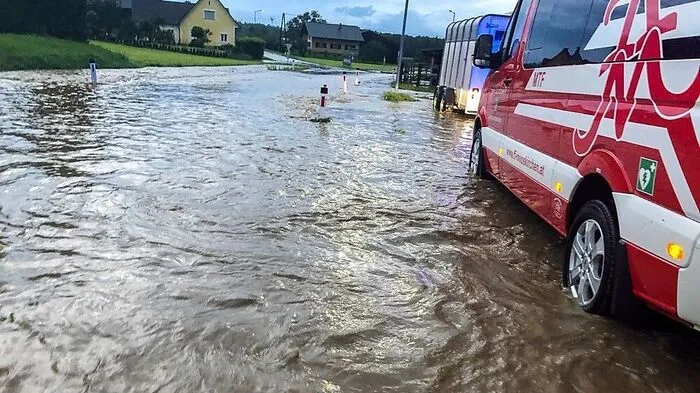 Mooskirchen stand zeitweilig unter Wasser, die Feuerwehren Steinberg und Ligist unterstützten