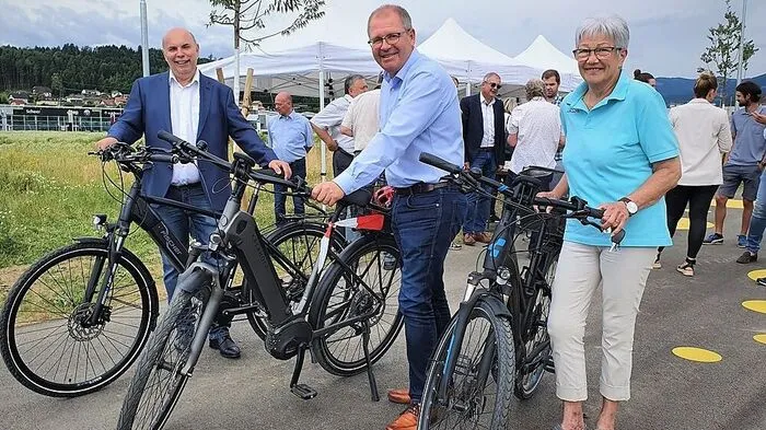 Manfred Prettenthaler, Bernd Osprian und Helene Maier am Radboulevard