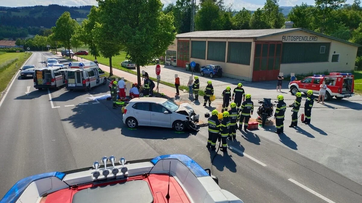 Motorradfahrer (45) bei Kollision mit Pkw lebensgefährlich verletzt