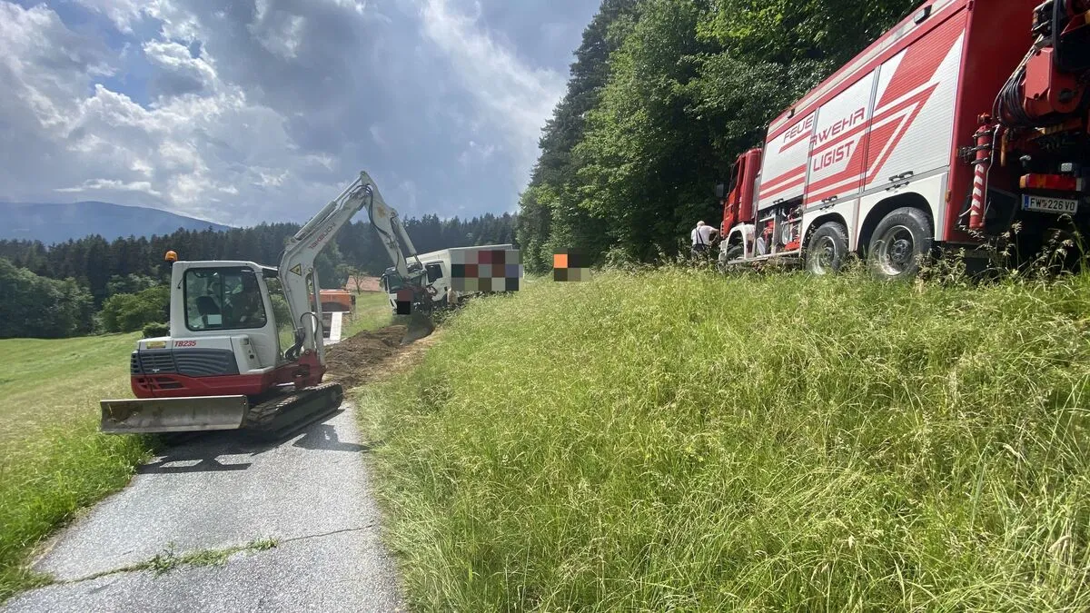 Um Lkw zu bergen, musste Bagger eine Wiese wegschaufeln