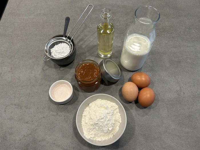 Die Palatschinken am besten in einer beschichteten Pfanne, in ein paar Tropfen Öl von beiden Seiten goldbraun herausbacken und mit heißer Marmelade füllen.