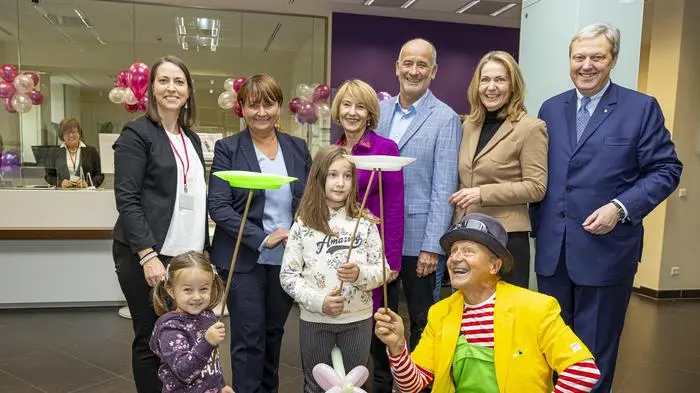 Vor dem Raiffeisenplatz blieb die Hüpfburg regenbedingt unbenützt, drinnen gab es jedoch laute Rufe. Das Unterhaltungsprogramm kam bei den insgesamt acht Kindergartengruppen bestens an. Drei Prozent Zinsen gibt es für die ersten 4000 Euro Erspartes der bis Zehnjährigen. Bei der Austrian Anadi Bank sind es ebenfalls drei Prozent bei einer Laufzeit von 48 Monaten. Gut besucht war auch der traditionelle Vorstandsempfang der Volksbank Kärnten in der Hauptgeschäftsstelle in der Pernhartgasse. Eine ausführliche Runde durch die verschiedenen Filialen machten auch Vertreterinnen und Vertreter aus Industrie, Wirtschaft und Politik. Auch Claudia Mischensky, Geschäftsführerin der Industriellenvereinigung Kärnten, nutzte den Weltspartag für Besuche.