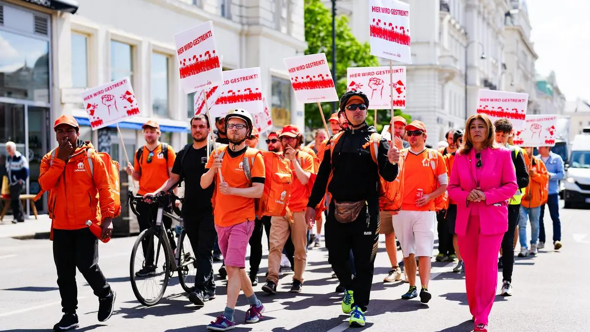 Zwar ist der Boom nach der Pandemie nicht komplett abgeebbt, aber zwischenzeitlich zeigte sich, dass es fast zu viele Fahrerinnen und Fahrer für zu wenig Aufträge gab. Der Markt konsolidierte sich. Und der KV? Ist seit nunmehr Monaten Gegenstand erbitterter Verhandlungen. Schon im vergangenen Herbst – die Inflation war damals besonders hoch – wurde für höhere Löhne demonstriert. Die KV-Verhandlungen stocken seit Monaten, die Gewerkschaft vida fordert zumindest die Abdeckung der rollierenden Inflation in Höhe von 8,7 Prozent. Nach mehreren KV-Verhandlungsrunden lag das Angebot der Arbeitgeber laut Gewerkschaft weiter bei 5,8 Prozent. Nach Warnstreiks im März und in der vergangenen Woche, war es am Dienstagabend wieder so weit. In Wien wurde bei Lieferando und Foodora gestreikt, in Salzburg, Graz, Innsbruck und Klagenfurt vor Lieferando-Hubs.