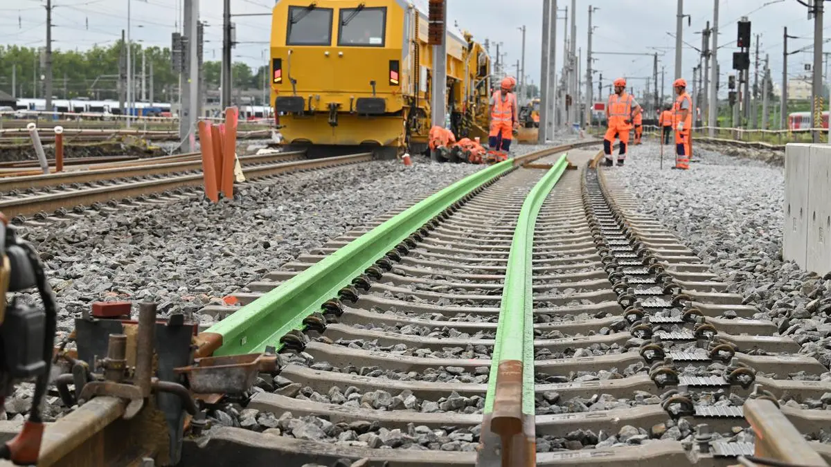 Sie ist nur wenige Meter lang und lindgrün bemalt: Die laut Unternehmensangaben weltweit erste wasserstoffbasiert hergestellte Eisenbahnschiene der voestalpine ist am Dienstag in Linz verlegt worden. Der eher symbolische Akt war begleitet von einem „Großen Bahnhof“ am Bahnsteig 8 des Hauptbahnhofs.