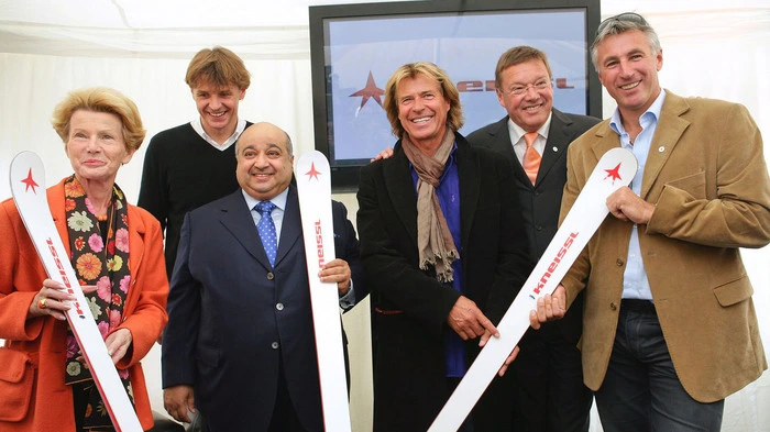 Bürgermeisterin Hilde Zach, Ex-Geschäftsführer Andreas Gebauer, Scheich Al Jaber, Hansi Hinterseer, Fritz Unterberger und Leonhard Stock bei der Präsentation der Kneissl Star Lounge | Die Vermarktung über sogenannte Kneissl Star Lounges scheiterte - damals bei der Präsentation: Bürgermeisterin Hilde Zach, Ex-Geschäftsführer Andreas Gebauer, Scheich Al Jaber, Hansi Hinterseer, Fritz Unterberger und Leonhard Stock (von links)