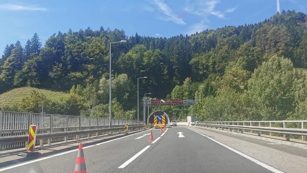 Eine Baustelle auf der Südautobahn kurz vor einem Tunnel | Wer vorausschauend beschleunigt und bremst, kann die Spritkosten erheblich senken