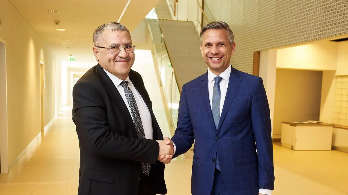 Nabil Kafi, Generalsekretär des algerischen Ministeriums für Energie und erneuerbare Energien und Wirtschaftsminister Wolfgang Hattmannsdorfer