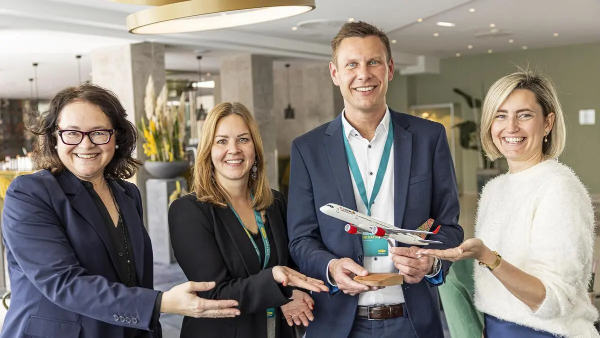Klagenfurter Flughafenchef Maximilian Wildt mit Sarah Nussbaumer beim Kongress in Pörtschach | Trotz Krisenstimmung optimistisch: Klagenfurter Flughafenchef Maximilian Wildt mit Sarah Nussbaumer (Kärnten Werbung, rechts)