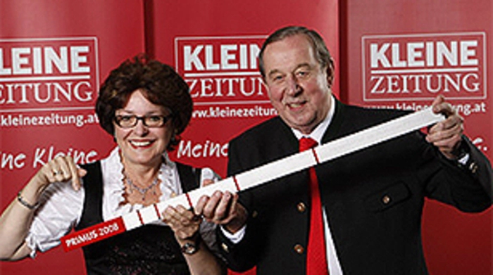 Grete und Heinz Reitbauer freuen sich über den Primus, den sie für ihr Lebenswerk überreicht bekamen.