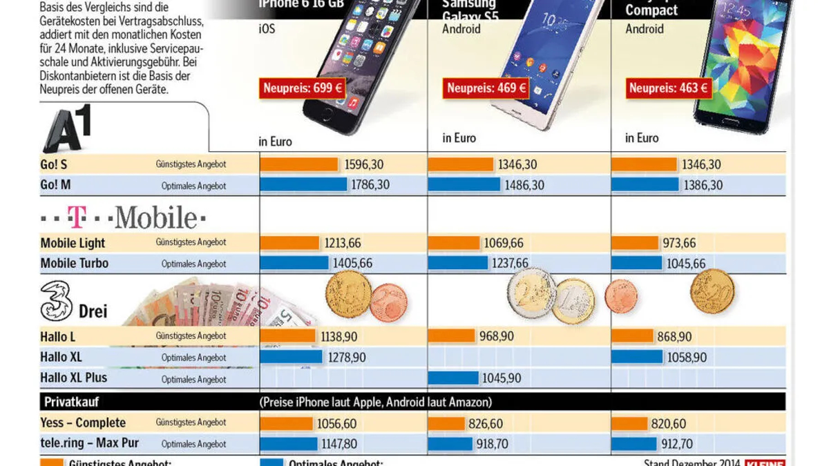 Im Gegensatz zu den vergangenen Jahren liefern sich die Mobilfunkanbieter heuer vor Weihnachten keine Preisschlacht. Die Förderung von Geräten wurde stark zurückgefahren. Ein paar Angebote gibt es dennoch. Ein Vergleich Von Roman Vilgut