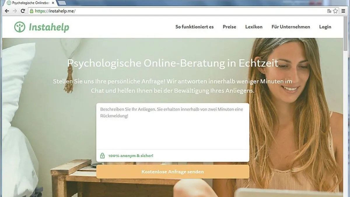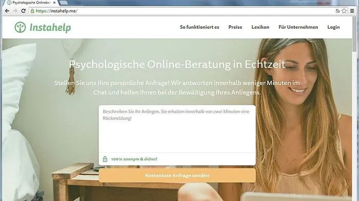 Psychologische Beratung als Online-Geschäftsmodell: Das Start-up "Instahelp" hat eine Plattform gestartet, über die sich Ratsuchende mit professionellen klinischen Psychologen austauschen können. Dahinter stehen prominente Investoren.