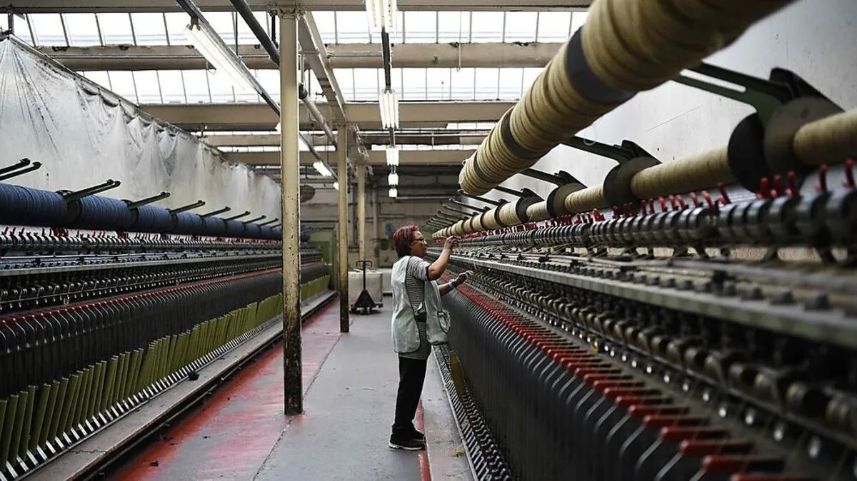 Arbeiterin in einer britischen Wollfabrik
