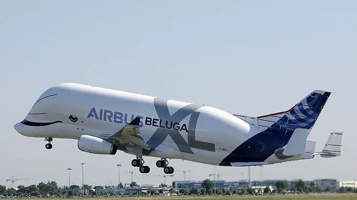 Jungfernflug für einen Beluga: Bemalt mit einem lächelnden Weißwalgesicht ist am Donnerstag die neue Großfrachtmaschine von Airbus zu ihrem Erstflug abgehoben.