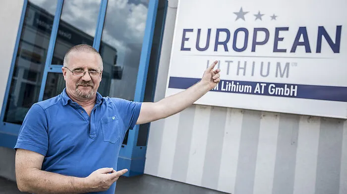 European Lithium-Chef Dietrich Wanke vor seinem Wolfsberger Büro
