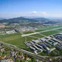 Der neue Flughafenkomplex soll hier entstehen (blaue Fläche), im Süden der TecPark (rote Fläche, nördlich und südlich der Landebahn der Gewerbe- und Logistikpark (gelb, beige)