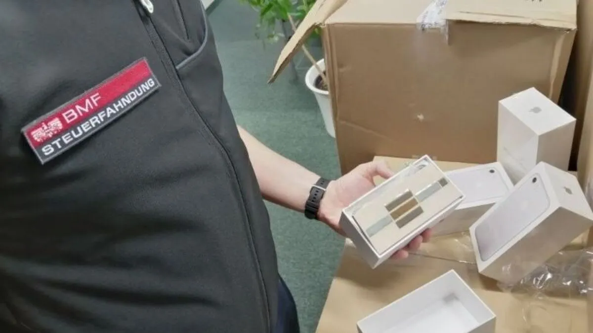 Bei der Durchsuchung des Handyshops in Wien deckten Steuerfahnder einen internationalen Karussellbetrug auf. In präparierten Verpackungen waren Fliesen und Ziegelbruchstück statt iPhones.
