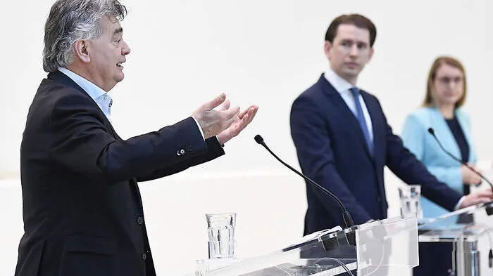 Vizekanzler Kogler, Bundeskanzler Kurz und Wirtschaftsministerin Schramböck