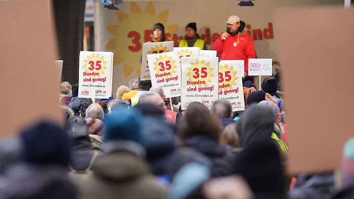 Gewerkschaften beharren auf Einführung einer 35-Stunden-Woche bei vollem Lohn- und Personalausgleich.