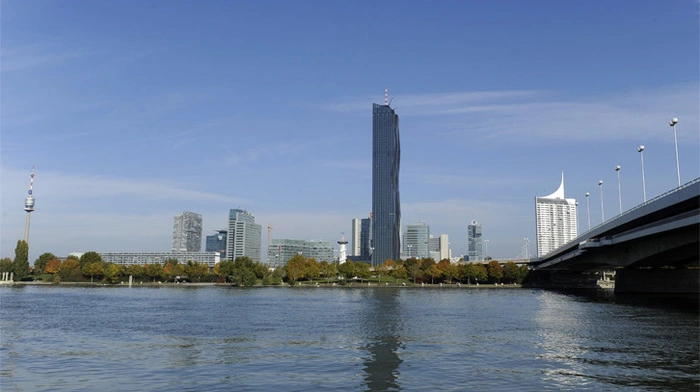 Mit 250 Metern ist der "DC-Tower 1" in Wien das höchste Haus Österreichs. Die Außenarbeiten an dem 60-stöckigen Haus sind praktisch abgeschlossen, der Innenausbau läuft noch auf vollen Touren.