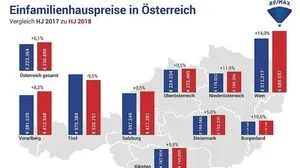 EINFAMILIENHÄUSER IN DER STEIERMARK Verkaufszahlen "explodieren" Der neue Immo-Spiegel von Remax für das erste Halbjahr 2018 zeigt: Der steirische Einfamilienhaus-Markt legte fast um ein Drittel zu. Bei den Preisen gibt es im Vergleich zum Vorjahr ein Plus von 5 Prozent. Der Markt im Detail. EINFAMILIENHÄUSER IN DER STEIERMARK